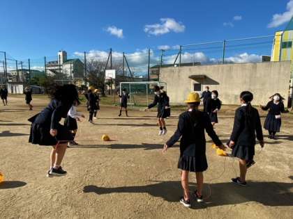 色々なとび方に挑戦しています。高学年の児童はさすがに慣れたものです。