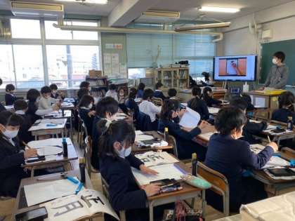 2組の国語科(書写)です。姿勢を正して「正月」の文字を書きました。気分はもうお正月ですね。