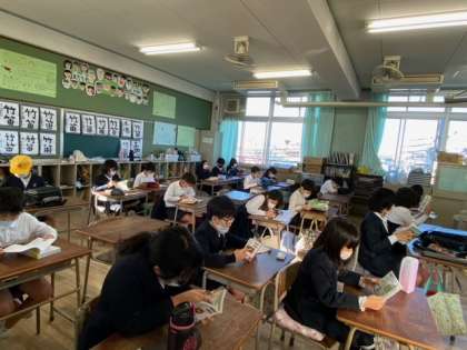 今日の朝の時間は「読書タイム」です。子どもたちが、心を落ち着けて本を読んでいます。