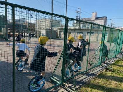 一輪車も人気です。もちろん、なわとびも…………