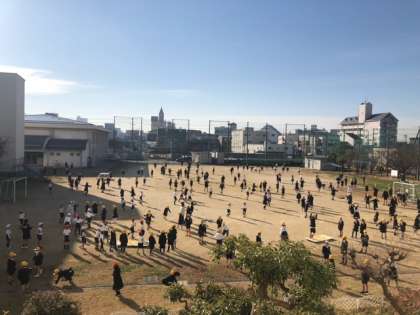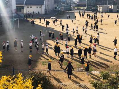 たっぷりの陽ざしを浴びて、子どもたちが「なわとび」に夢中になっています。