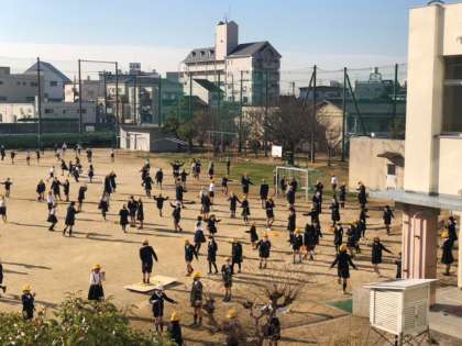 校長先生も「○○とびができたよ」と声をかけてくれる子どもたちと一緒になわとびをしました。(少し息が上がりました)