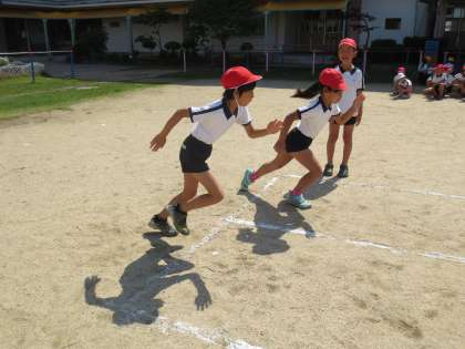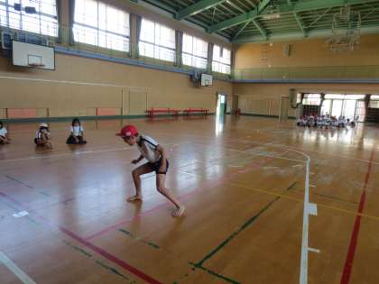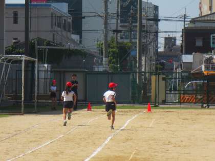 3年生は50m走をしています。スタートからゴールまで全速力で走っていました。体育館では反復横とびの記録をとっていました。