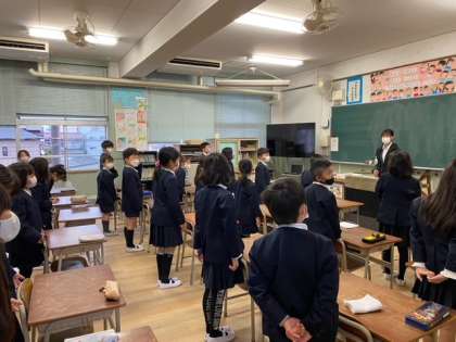 担任の先生と、改めてあいさつをしました。先生の話や連絡を聞き、提出物の確認をしました。