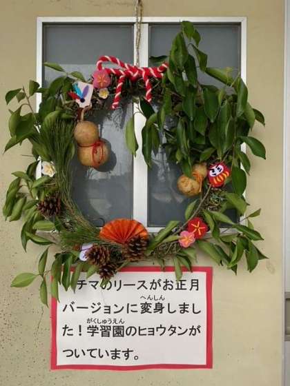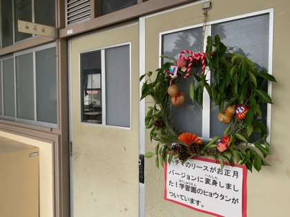 理科室の入口には、学習園の「ひょうたん」などを使ってつくられた「お正月飾り」が飾られています。