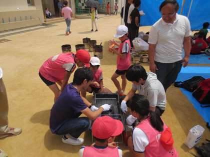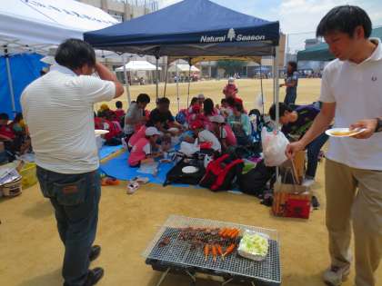 お昼ごはんは1時間前から準備していました。焼き肉よりウインナーが大人気!子どもたちはとても美味しいと言っていました。