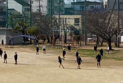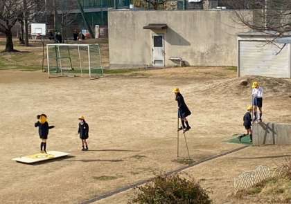 今日も、運動場では子どもたちが元気に遊んでいます。