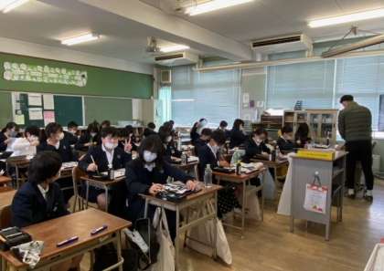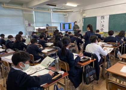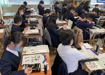 「書き初め」ですね。「強い決意」を書いていました。何度も練習をして清書をしていきます。