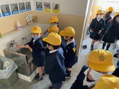子どもたちが、しっかりと手洗いをしています。