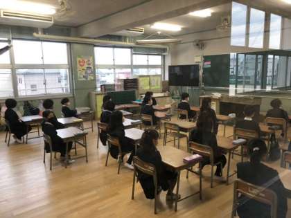 教室では、子どもたちが姿勢よく話を聞いていました。
