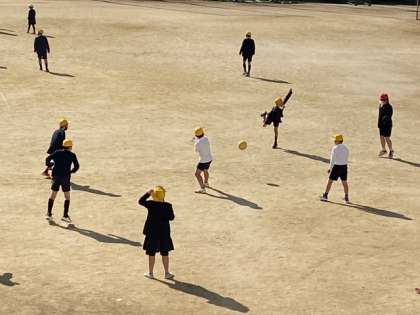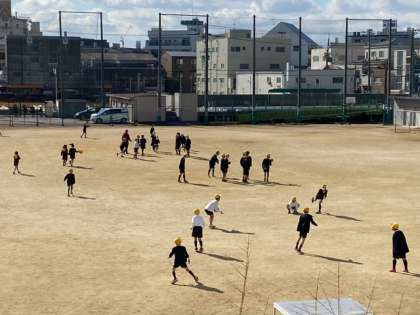 運動場では子どもたちが、元気に外遊びをして楽しんでいます。