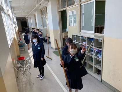 各学級で、学級のめあてとチェック項目を考えて決め、1週間そうじに取り組みます。そうじ終了後に「おそうじチェック表」を活用して、その日のそうじを振り返ります。最後まで責任をもって清掃活動に取り組む態度を育てます。