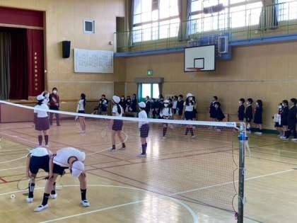 (写真は、科学クラブ・バドミントンクラブを見学しているようすです)