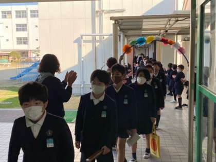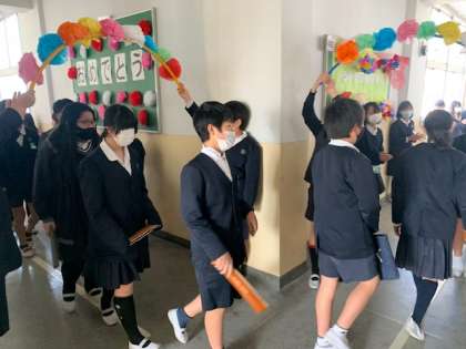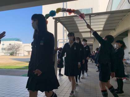 お世話になったお兄さんお姉さんが、アーチをくぐっていきます。