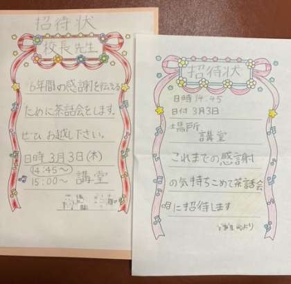 担任以外の先生や職員に子どもたちから招待状が届けられました。