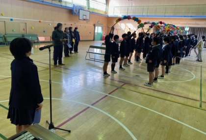 「さくら」の演奏と手紙がプレゼントされました。花のアーチでお世話になった先生方にお礼の気持ちをこめました。