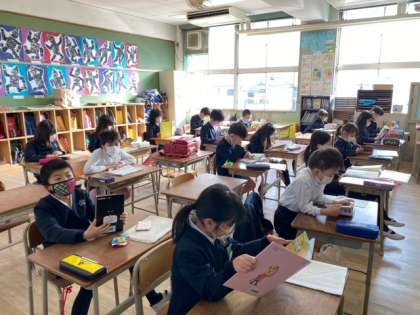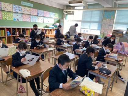 2年生の教室でも、子どもたちが、静かに読書に親しんでいました。