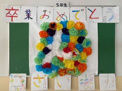 6年生を祝福するメッセージの続きです。(1〜5は掲載済み)今日は、5年生と保健室の掲示です。