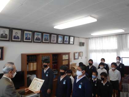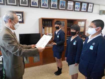 明日の朝の時間(全校朝会ができないため)に、授与のようすを録画した動画を全校児童に紹介します。