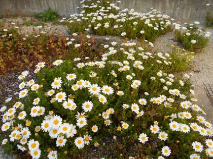 レインボーパークの片隅に、ノースポールが咲いています。白と黄が映えています。