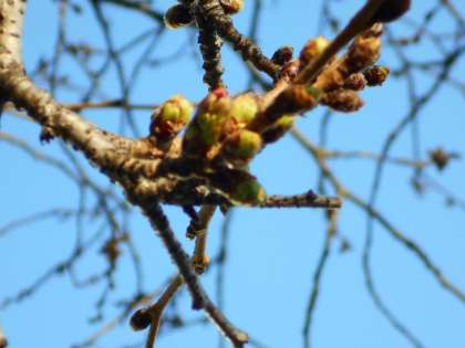 桜のつぼみも、ここ数日の暖かさで膨らみかけています。