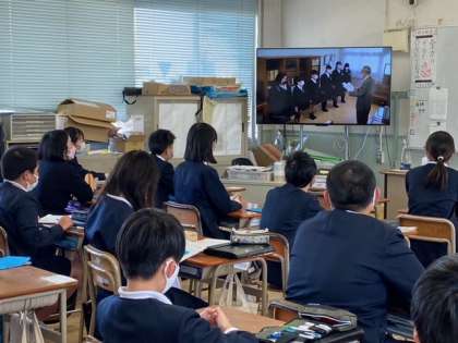 朝の会の時間に、全校児童が昨日の二つの表彰(ジュニアソフトボールと赤い羽根共同募金)の録画を、テレビ画面で見ました。