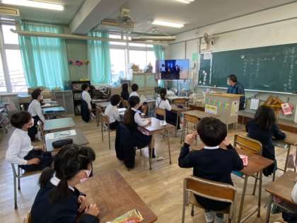 最後の集会です。まぜまぜクイズと三択クイズです。