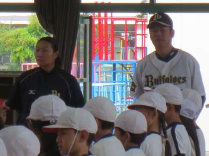 オリックス・バッファローズの方々が、野球指導に巽南小学校に来てくださいました。