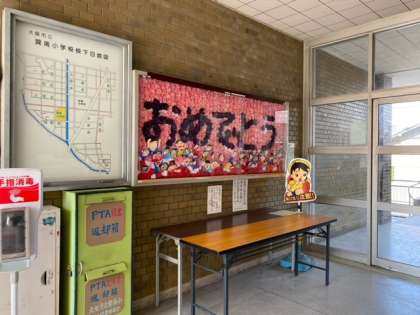 玄関と1階廊下、保健室前(1階)の掲示板です。
