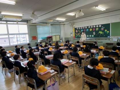 式のあと、新入生は教室に入りました。