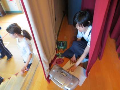 今日の児童集会は「イントロクイズ」です。集会委員会の児童が説明をしてからゲームがはじまりました。