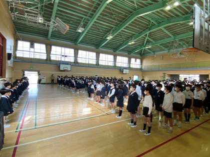 終業式では1年生の皆さんも一緒に歌いましょう。
