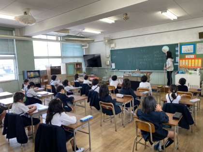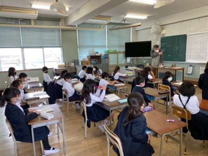 当番の仕事について、子どもたちが担任の先生から説明を聞いています。