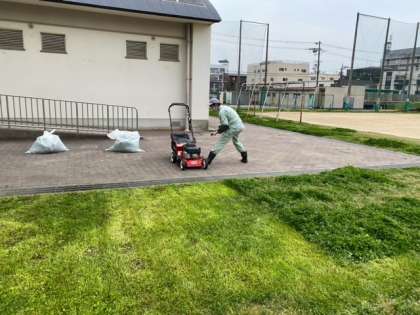 運動場周辺の草が伸びてきています。