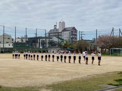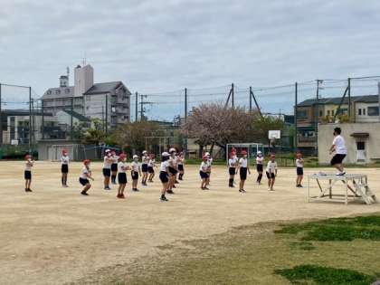外は暖かく半袖でも過ごせるくらいです。ラジオ体操や整列の仕方を学習しました。