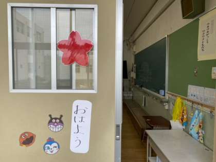 教室のドアでは、入室時に思わず「おはよう」と声が出ます。