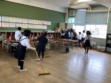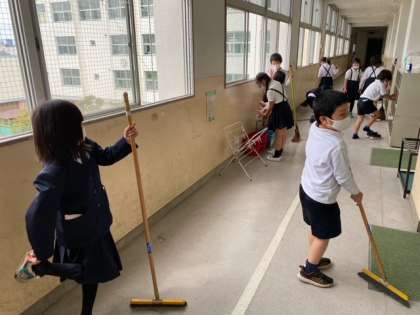 2年生・3年生の子どもたちが、教室や廊下のそうじをしています。