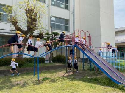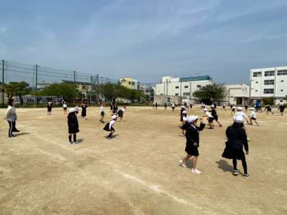 3年生1組は、「みんな遊び」でドッジボールをしていました。