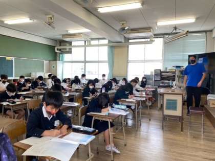 1組・2組ともに、子どもたちが、「水平線」の詩をていねいに視写していました。