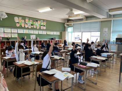 1組の国語科では、先生の発問に、手を挙げる子どもたちの姿勢がとてもいいですね。