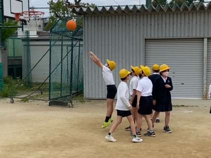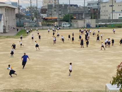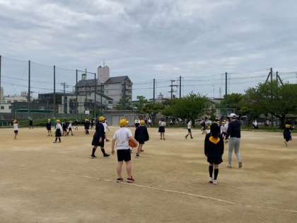 どんよりと曇って、今にも雨が降り出しそうな天気ですが、運動場には子どもたちが元気に走りまわる姿が見られます。