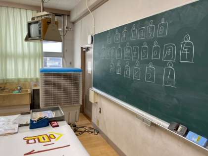 校舎の窓に、子どもたち手書きの「お祝い文字」を飾ります。その制作が今日から始まりました。