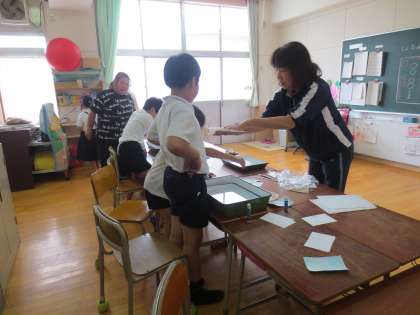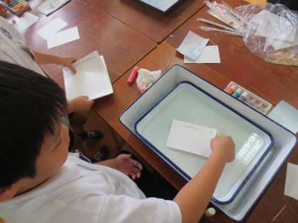 作ったはがきで、夏の涼しいお便りをだすのでしょうね。