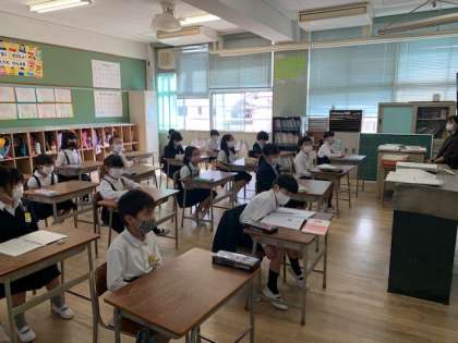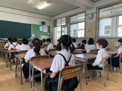 2年生も、お行儀よくお話を聞いています。いいですね。