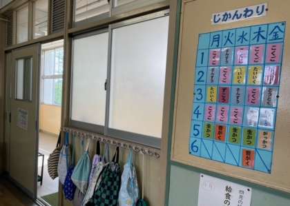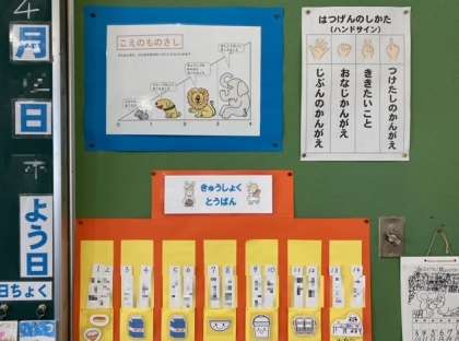 「ハンドサイン」や「児童朝会」「イングリッシュタイム」などの表示にも工夫が見られます。