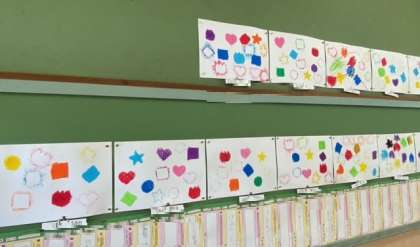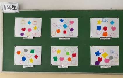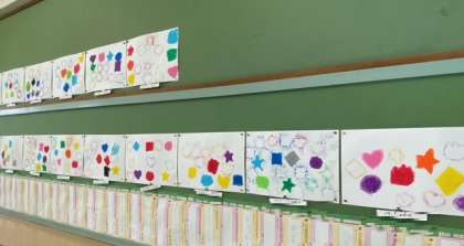 1年生の作品が、初めて学年の掲示板に登場しました。