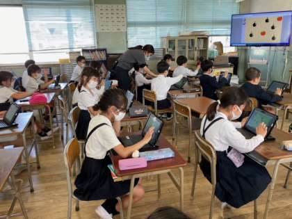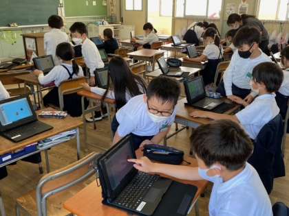 昨日、3年生2組の子どもたちが、プログラミング学習にチャレンジしました。