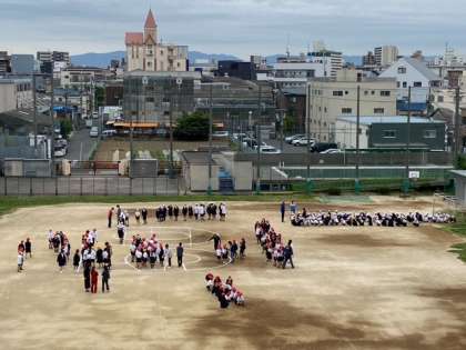 明後日に、ドローンによる 創立50周年記念の人文字撮影が予定されています。