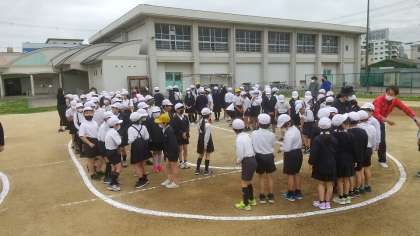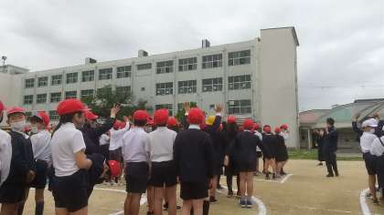 1限に、並び方の確認と練習をしました。白線で書いた数字の上で立つ位置を決めました。しゃべらずに短時間でできました。