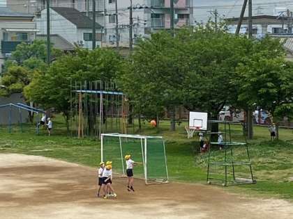 子どもたちが、運動場で元気いっぱい体を動かしていました。